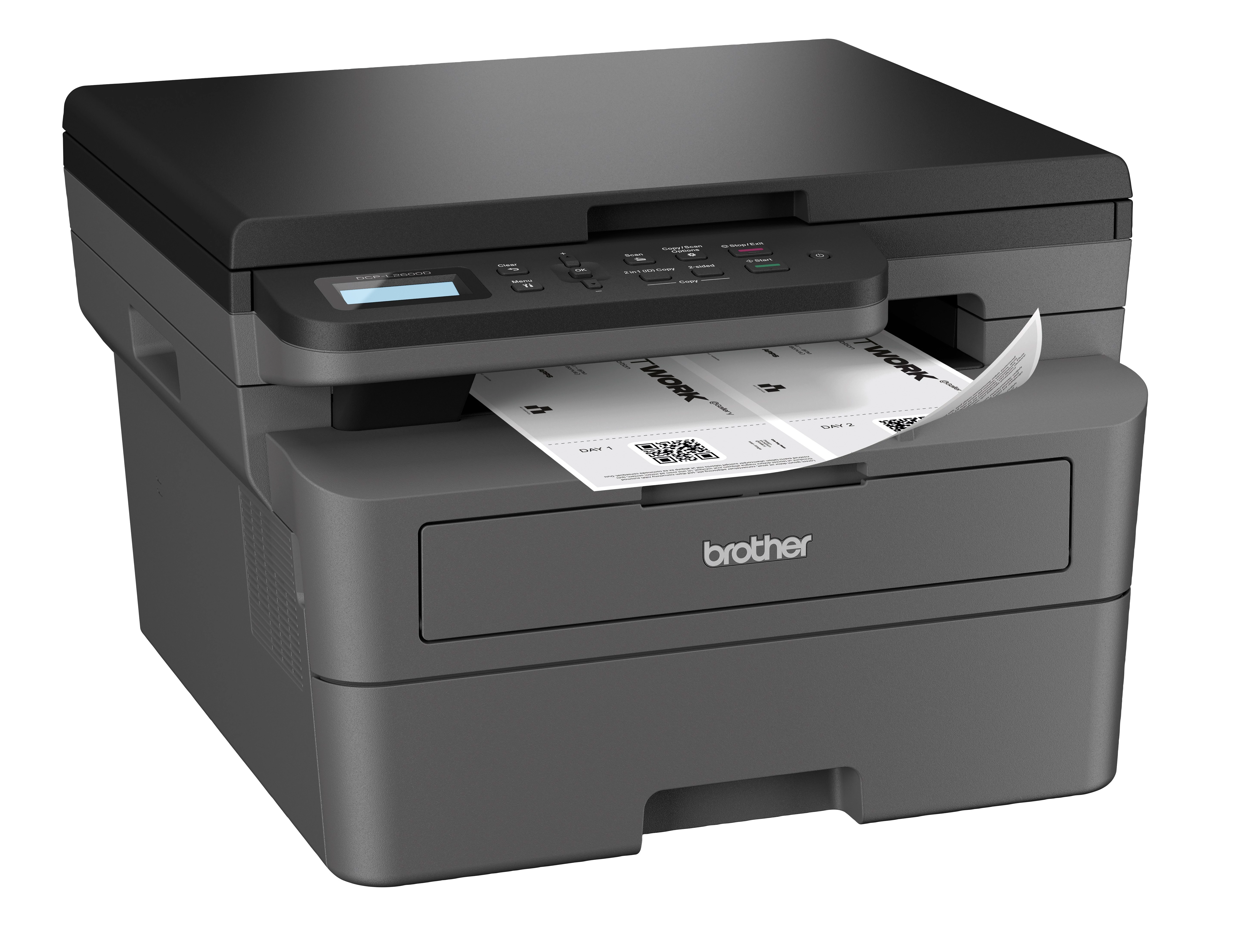 A Brother DCP-L2600D fekete-fehér lézernyomtató hatékonyra tervezett 3 az 1-ben készülék, otthoni vagy irodai használatra. Nyomtat, fénymásol és szkennel. Kis helyigényű és gyors nyomtatásra képes (34 oldal/perc). Az automatikus kétoldalas nyomtatás lehetőségével a lap mindkét oldalára nyomtathatunk, amivel papírt spórolhatunk meg. Két papírbemenete van, egy 250 lapos tálca és egy kézi adagoló. Könnyen beállítható és kezelhető. A nyomtató 700 oldalas induló tonerrel és teljes értékű dobegységgel érkezik. Tonerből két kapacitású kapható hozzá, 1200 vagy 3000 oldalas. A gyárto szerinti javasolt havi nyomtatási mennyiség 2500 oldal (-ig). A nyomtatóra 3 év garancia jár, ehhez regisztrálni szükséges a gyártó oldalán.