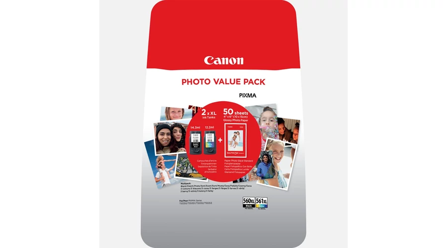 A csomag tartalma: 1db PG-560XL fekete tintapatron, 1db CL-561XL színes tintapatron