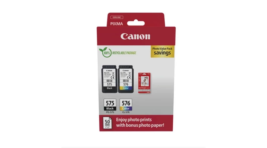 Canon PG-575/CL-576 (5,6ml BK+6,2ml CMY) eredeti 2db-os tintapatron multipack + Fotópapír a következő nyomtatókhoz használható: