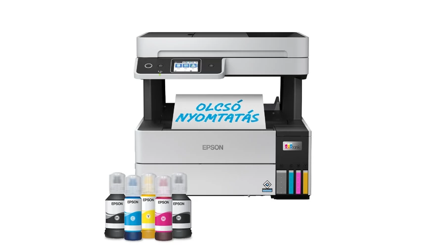 Az Epson EcoTank L6499 multifunkciós nyomtató egy újabb tagja a külső tartályos nyomtatócsaládnak. Ez a többfunkciós A4-es nyomtató rendkívül alacsony nyomtatási költséget és nagy nyomtatási sebességet biztosít, patronok vagy festékkazetták cseréje nélkül. Az otthoni irodák és kisvállalkozások számára tervezett, funkciókban gazdag A4-es nyomtató rendkívül alacsony lapköltséget és ultragyors nyomtatást garantál. A 250 lapos elülső papírtálcának, a 6,1 cm-es LCD-érintőképernyőnek és a 35 lapos automata lapadagolónak köszönhetően a nyomtatás szinte magától megoldódik. Emelje otthoni irodájának színvonalát magasabb szintre ezzel a gyors és hatékony nyomtatóval, amellyel az első oldal 7 másodperc alatt kész. Nyomtasson, másoljon, szkenneljen vagy faxoljon az L6490 nyomtatóval, amely kétoldalas nyomtatást tesz lehetővé, és 250 lapos elülső papírtálcával, valamint 35 lapos automata lapadagolóval működik. A 6,1 cm-es LCD érintőkijelzőn könnyen navigálhat a számos funkció között. Spóroljon mindig, amikor ezzel az EcoTank nyomtatóval nyomtat, hihetetlenül alacsony lapköltséggel. Más nyomtatókkal ellentétben az EcoTank nagy tintatartályokkal rendelkezik, amelyekbe a tinta alacsony áron kapható. A gyorsan száradó EcoTank 112 tintasorozat tagjait pigment tinták képezik, az elkenődésnek, a nedvességnek és a szövegkiemelőnek ellenálló nyomatokért. Egyetlen csere tintapalack-készlet akár 7500 fekete-fehér és 6000 színes oldal nyomtatásához is elegendő. Wi-Fi és Wi-Fi Direct használatával dokumentumokat küldhet okoseszközökről az Epson iPrint és Smart Panel alkalmazásokkal. A tintatartályok feltöltése egyszerű a visszazárható, intuitív és tiszta használatot lehetővé tévő tintapalackok révén. Az Epson egyedülálló hő nélküli PrecisionCore technológiája nagyobb megbízhatóságot, csökkentett állásidőt és alacsonyabb környezeti terhelést jelent. Nincs szükség bemelegedési időre, az első oldal pedig hamarabb elkészül, alacsonyabb áramfogyasztás mellett.