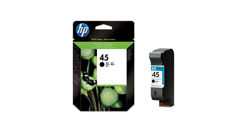 A HP 45 fekete tintapatron ideális azon üzleti vagy otthoni felhasználók számára, akik kiváló minőségű, hosszú élettartamú nyomatokat szeretnének. A nagy felbontású, pigmentált tinta felhasználásával kiváló nyomtatási minőséget biztosítva borotvaéles karaktereket állít elő a legtöbb rajz-/másolópapíron, és úgy tervezték, hogy együttműködjön a HP színes tintáival. A festékpatron hamisítatlan HP tintája minden nyomtatásnál minőséget és megbízhatóságot biztosít.