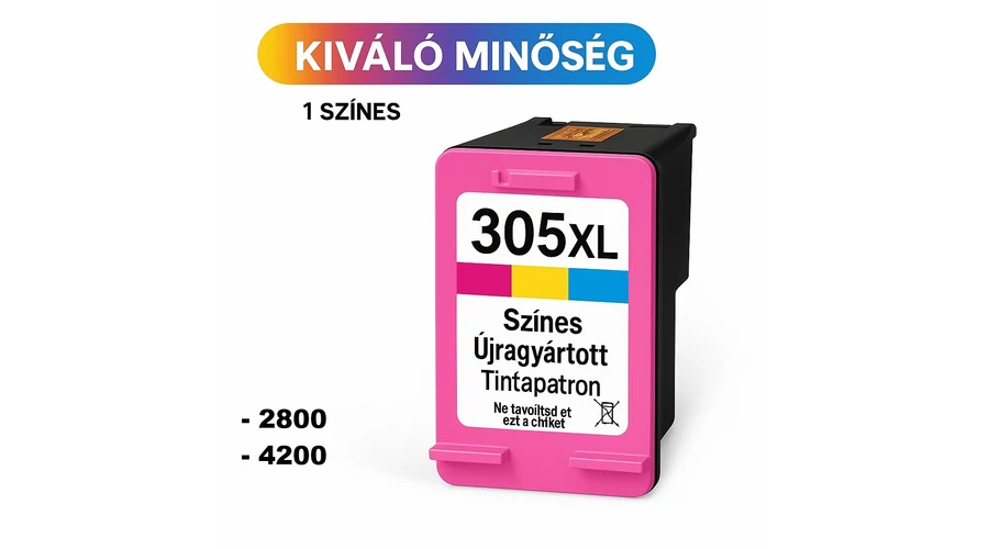 Utángyártott HP 305XL (3YM62AE) (CMY) (18ml) tintapatron /Lepkés CN/ (HP 2800e/4200e szériákhoz) a következő nyomtatókhoz használható: