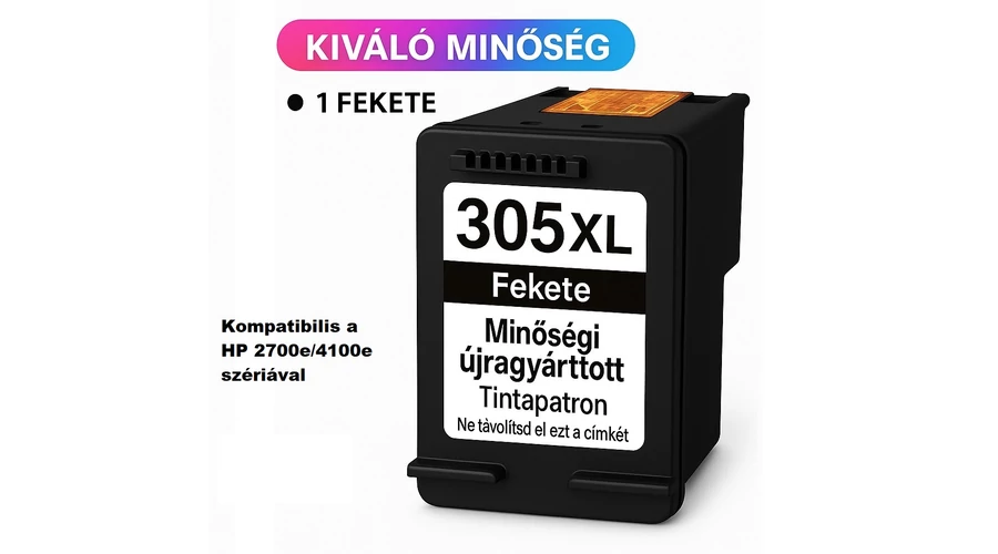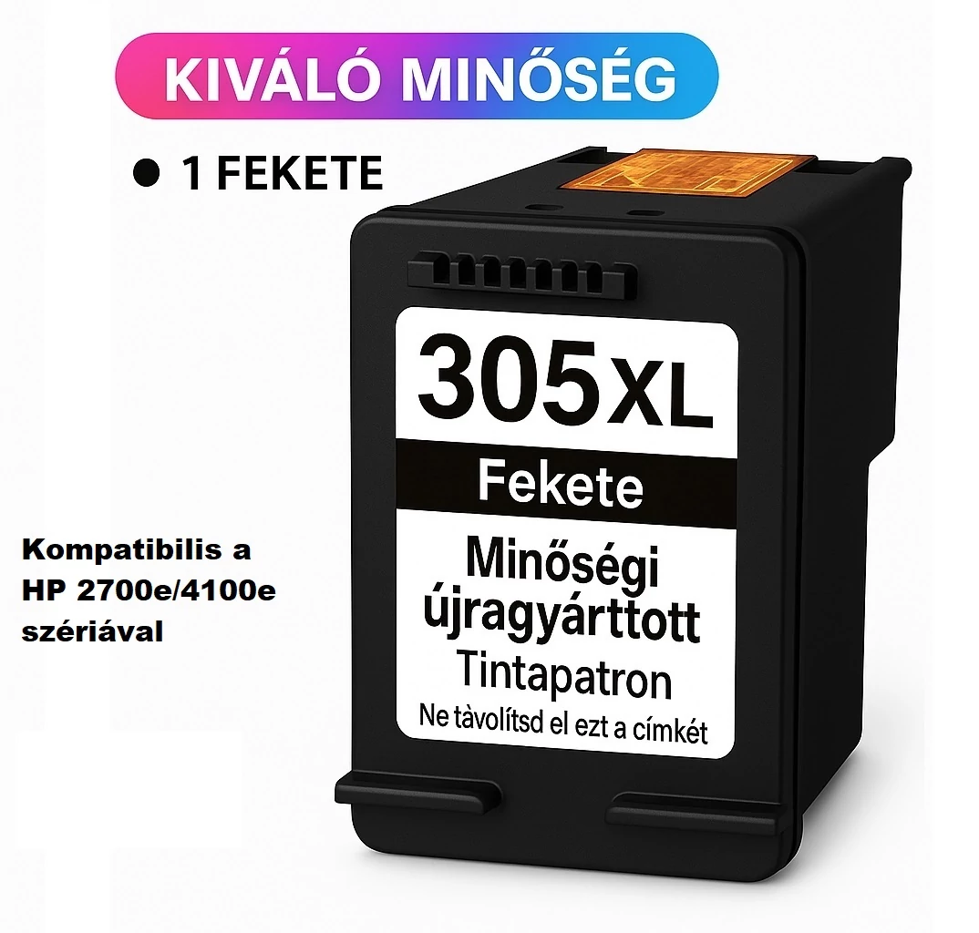 Utángyártott HP 305XL (3YM62AE) (BK) (18ml) tintapatron /Lepkés CN2/ (HP 2700e/4100e szériákhoz) a következő nyomtatókhoz használható: